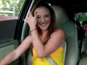 Cute redhead flashing boobs on a sex ride
