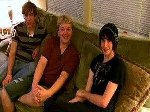 Hot gay Aron, Kyle and James are suspending out on the couch and